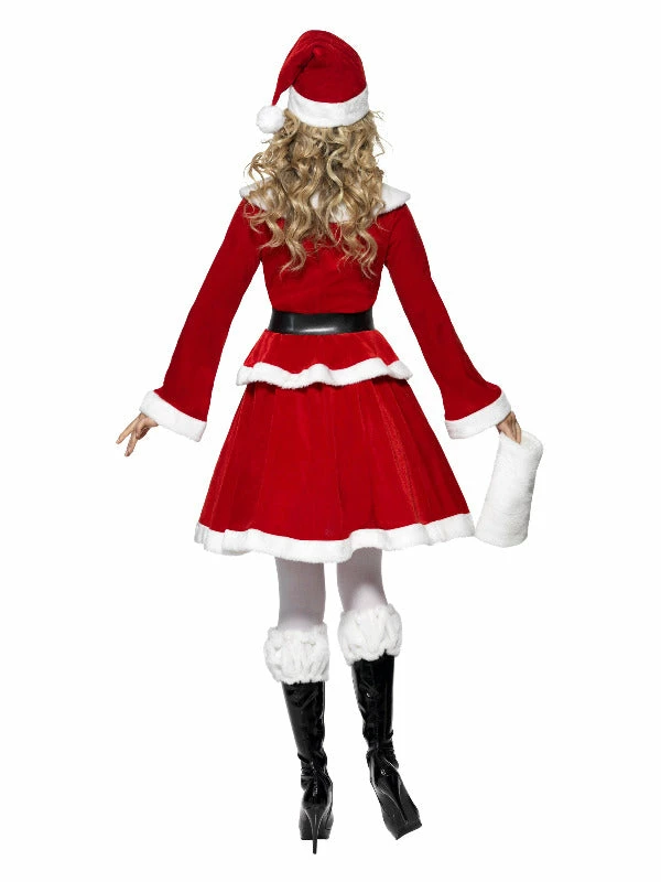 Ho ho ho! Spread the Christmas cheer with the Miss Santa Costume With Muff Costume. Included is a muff, jacket, skirt, hat and belt.