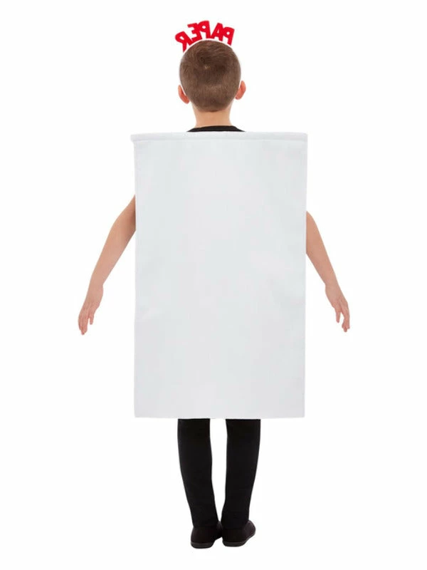 Girl’s and boys paper fancy dress costume. A funny childs universal outfit for a rock, paper or scissors party occasion.Â