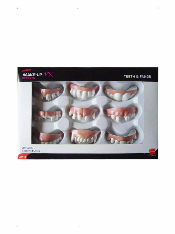 Smiffys Make-Up FX, Assorted Teeth & Fangs, White, 9