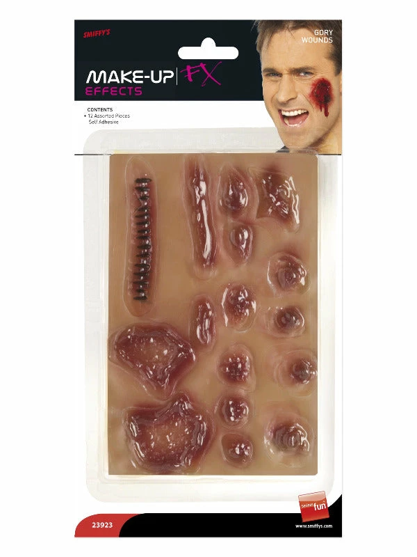 Smiffys Make-Up FX, Gory Wounds, Red, Self Adhesive, 12 Pieces