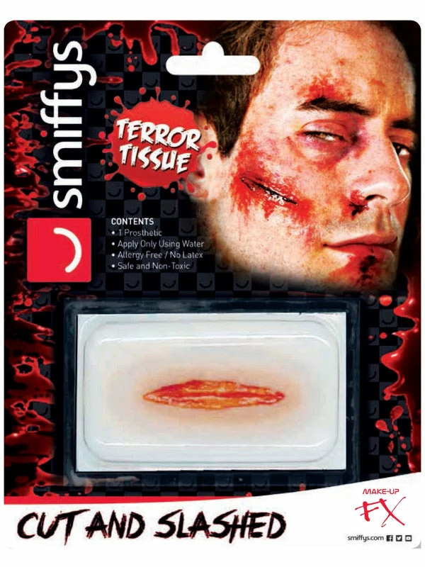 Smiffys Make-Up FX, Horror Transfer, Cut & Slashed Wound, Red, Water Based, Allergy & Latex Free