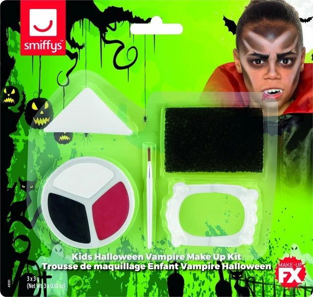 Smiffys Make-Up FX, Kids Vampire Kit, Aqua, Multi-Coloured, Face Paints, Fangs, Stipple Sponge & Applicators