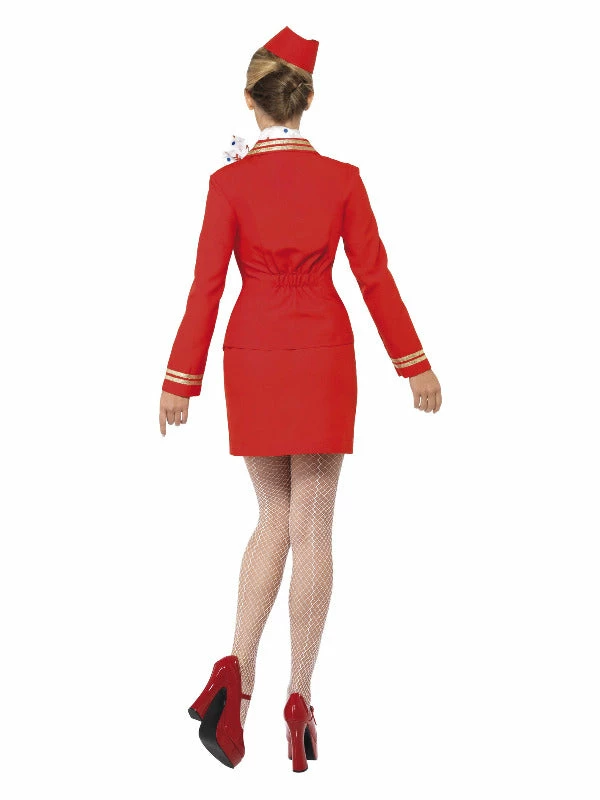 Trolley Dolly Costume, Red, with Jacket, Skirt, Scarf & Hat