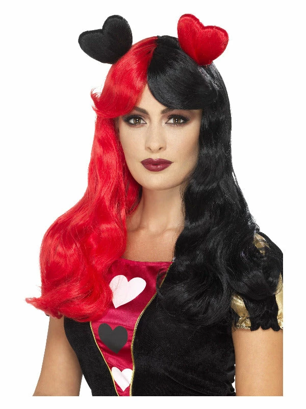 Two Tone Cosplay Wig, Red & Black, with Attached Hearts