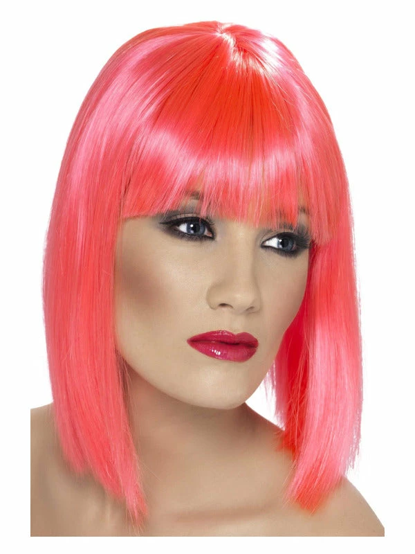 Glam Wig, Neon Pink, Short, Blunt with Fringe