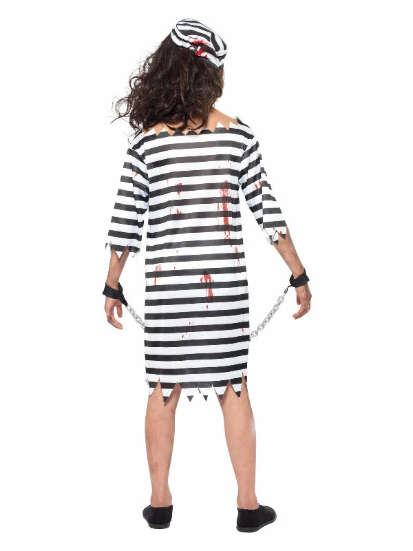 Zombie Convict Girl, Black & White, with Dress, Hat & Chain