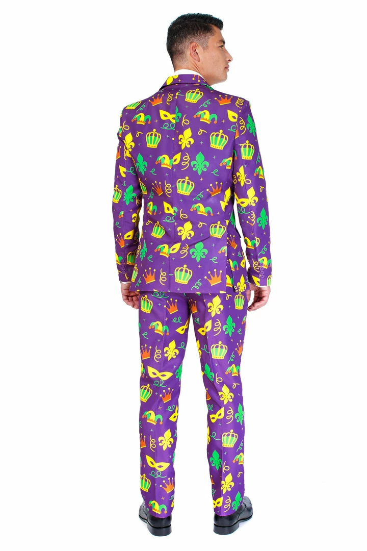 We all know life is for living.. but we believe that you should always have a laugh along the way! You will be sure to get the attention you deserve once you suit up and button up in this polished slim Mardi Gras Purple Men’s full matching funky costume suit. Your confidence will soar as you strut your stuff and head out in style. Party the night away, or add some spice and bring life and flare to the office. You’ll definitely be turning heads on that special date or celebration. Dare to be different, be seen, be bold, and we can guarantee you will make some memories along the way.. You’re Welcome!Â