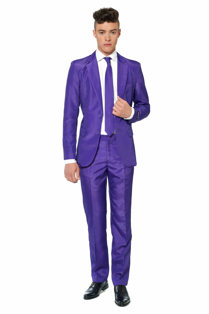 We all know life is for living.. but we believe that you should always have a laugh along the way! You will be sure to get the attention you deserve once you suit up and button up in this polished slim fit Solid Bright Purple Men’s full matching costume suit. Your confidence will soar as you strut your stuff and head out in style. Party the night away, or add some spice and bring life and flare to the office. You’ll definitely be turning heads on that special date or celebration. Dare to be different, be seen, be bold, and we can guarantee you will make some memories along the way.. You’re Welcome!Â