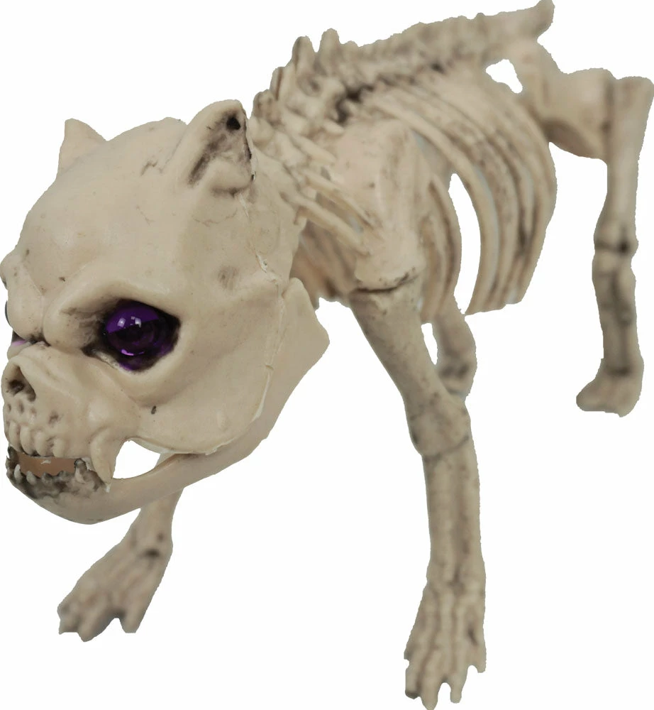 Give your home decor an adorable haunted look with this Pug dog Skeleton Halloween Decoration Prop. This fun canine prop makes an exciting addition to your seasonal Halloween decorations. It features an ivory skeleton model with realistic bone detailing to add a creepy look wherever placed.Â