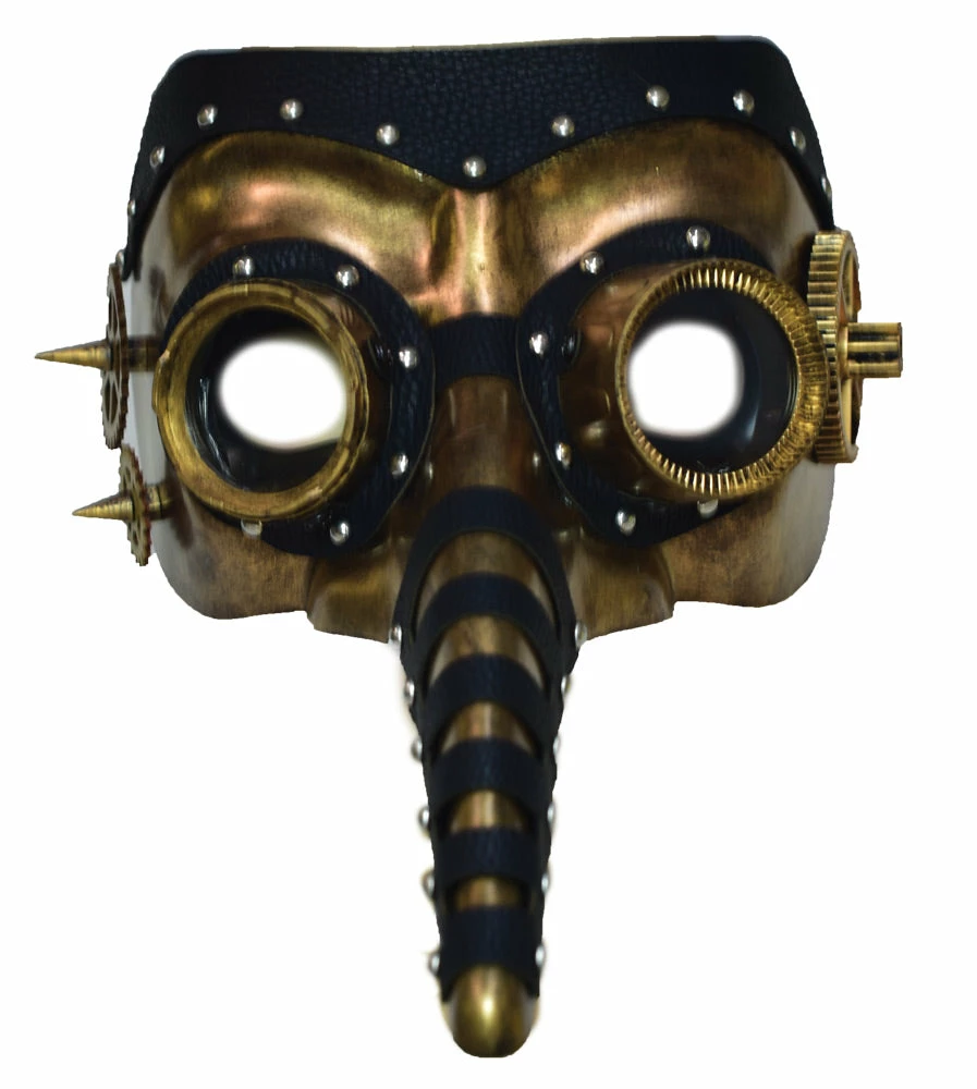 A great mask perfect for accessorizing your favorite steampunk costume. The segmented long nose makes this a mask unlike any other! One size fits all.