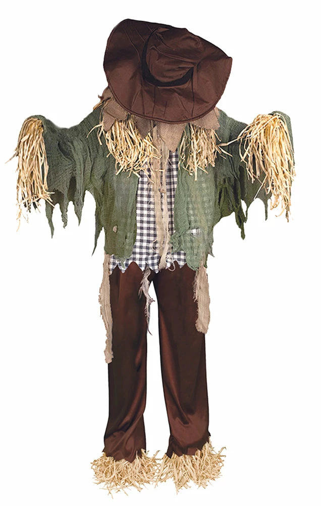 Greet your guests with this frightening Animated Scarecrow decoration. Your porch will be the spookiest in the neighborhood with this awesome scarecrow decor. The Animated Standing Surprise Scarecrow features a scarecrow in tattered clothing with creepy sounds and the saying “Come One Step Closer and I’ll Take Your Soul”. The Animated Scarecrow is motion activated with a PIR Human Sensor. Step in front and the scarecrow head will quickly snap up. Requires 4 AA batteries or 6V 2A Adapter (not included). Optional footpad setup (footpad is not included).