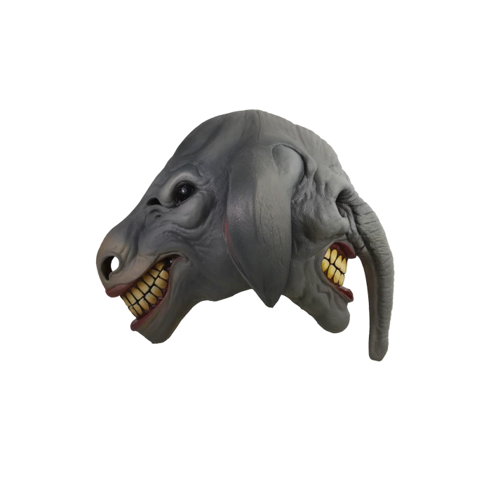 From, “American Horror Story: Cult” we offer the Latex Mask. The Cult’s inner members dress up in morbid clown costumes to hide their identity. This mask features two sides, An Elephant to represent Republicans and a Donkey to represent the Democrats. This amazing replica was sculpted by David Anderson and the team at AFX and it comes directly out of the master mold from the show! Full over-the-head latex mask. One size fits most adults.