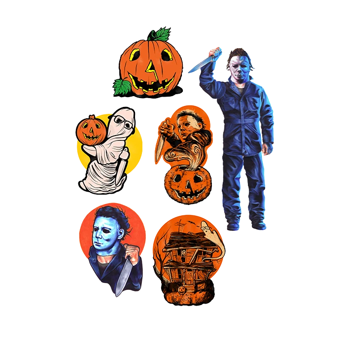 This amazing collection of wall decor comes with five static wall decor designs and one posable Michael Myers wall decor.