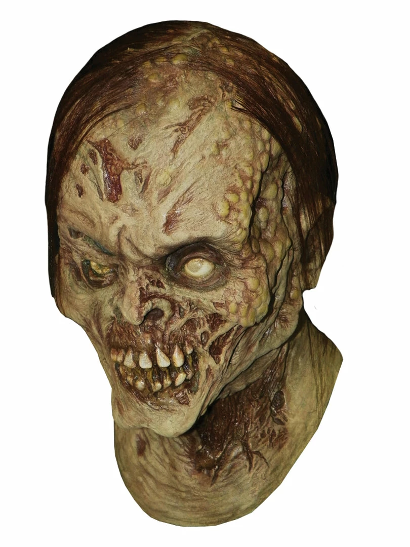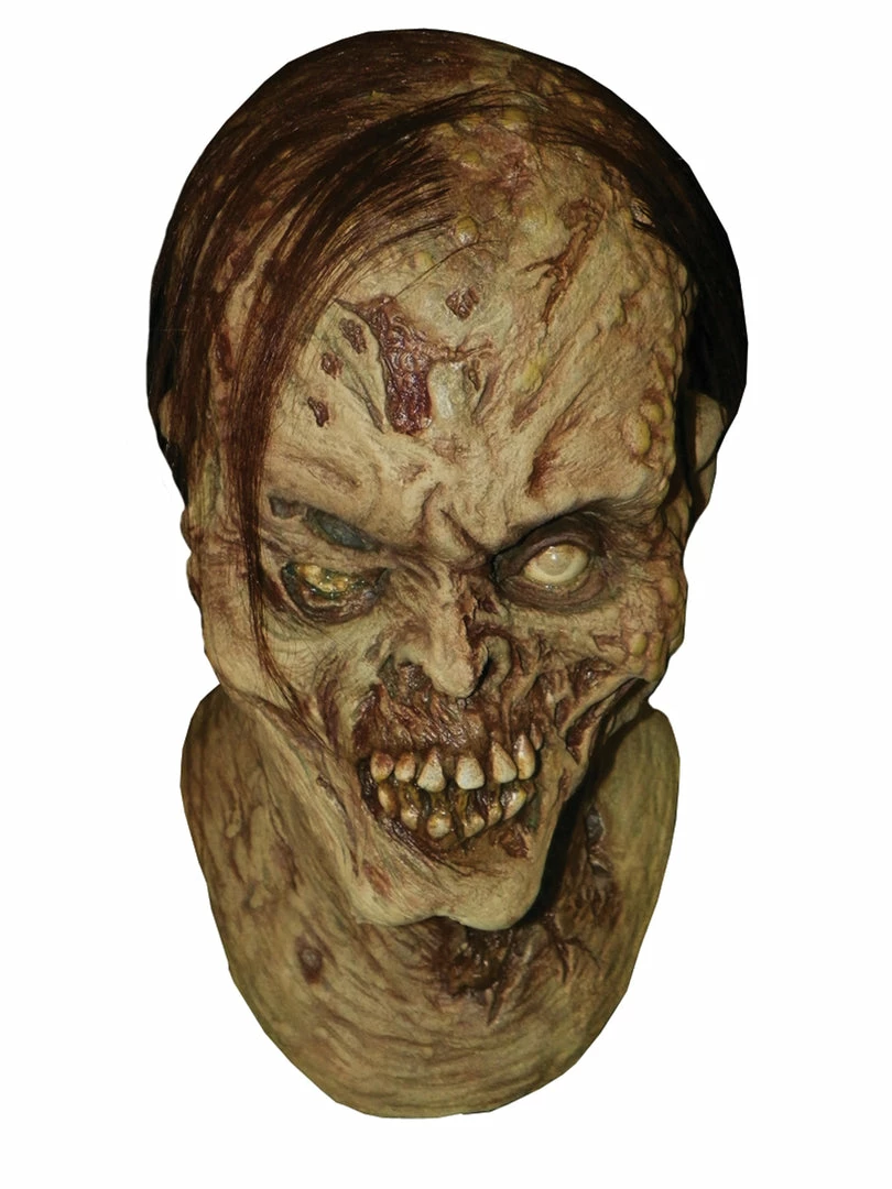 Crawling out of his watery grave comes this rotting zombie! Complete with fractured eye and thin black dead hair and menacing gaze, this mask is sure to be your favorite! Over-the-head latex mask.