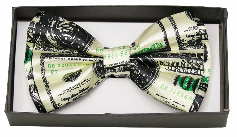 Show people what you are all about with this great new bowtie with the look of a one hundred dollar bill! People will think you make your own ties out of spare money! One size fits most adult men.