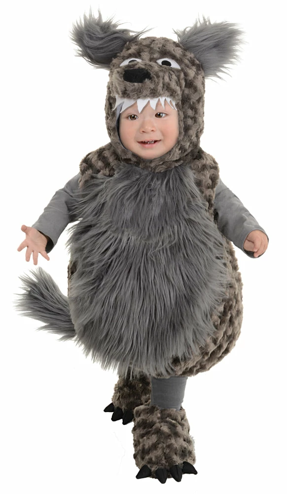 A fun costume for your little one to enjoy his first few trick or treat experiences! Plush swirl fur body with animal face hood with wide mouth so childs face can be seen and shoe covers.