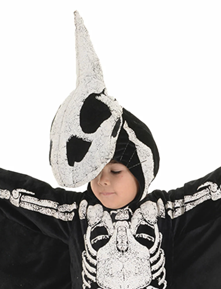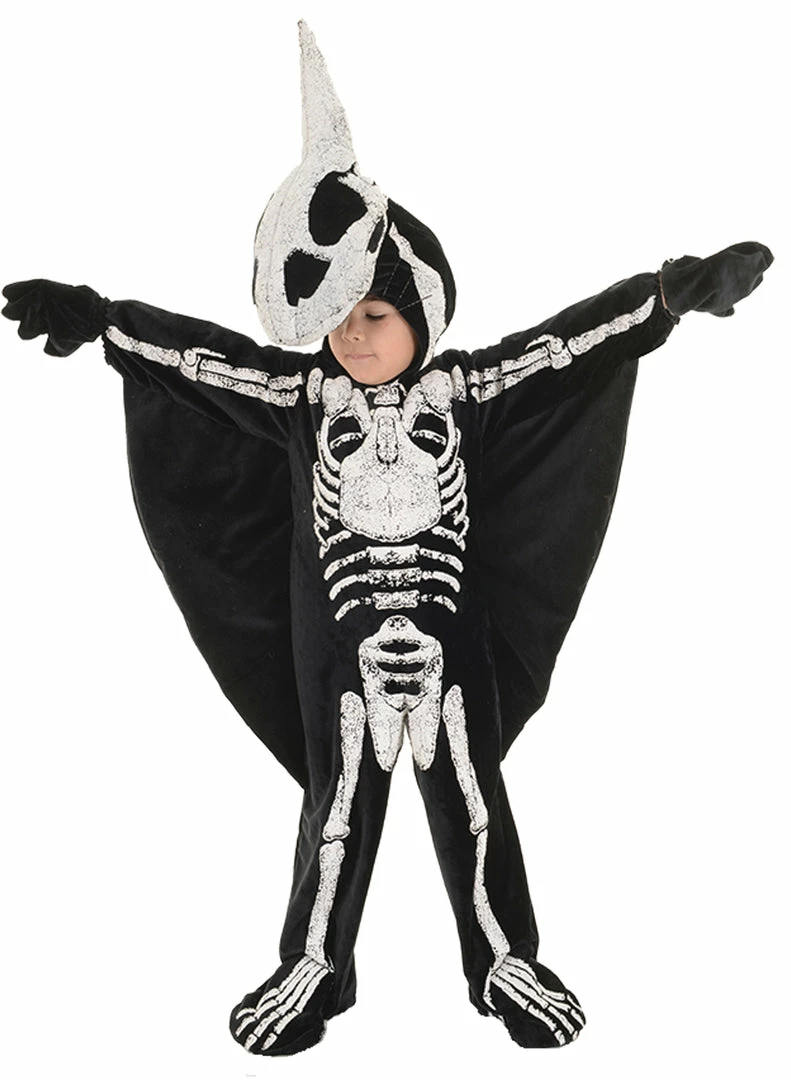 Jumpsuit with realistic silkscreened bone designed with attached feet matching bone hood and mitts.