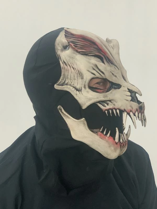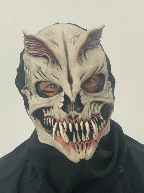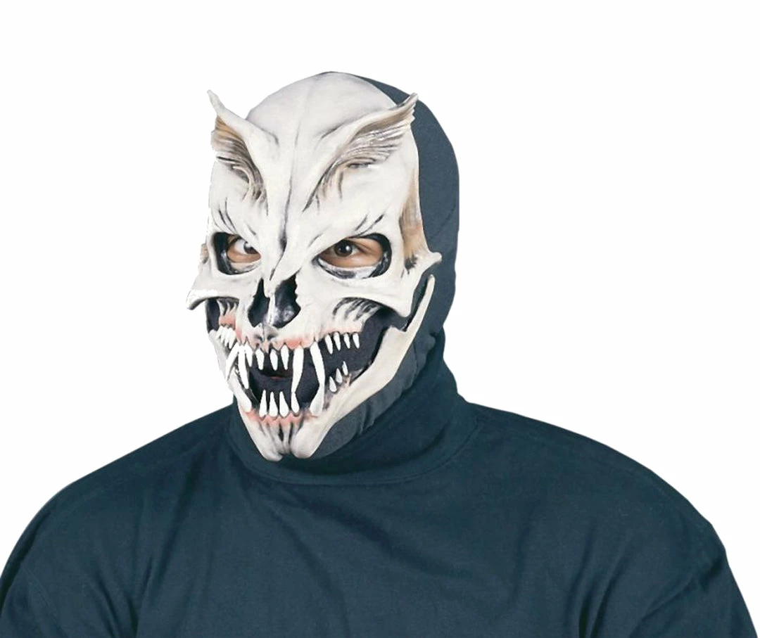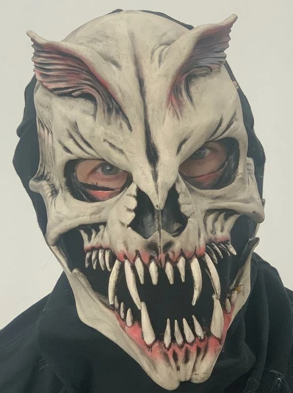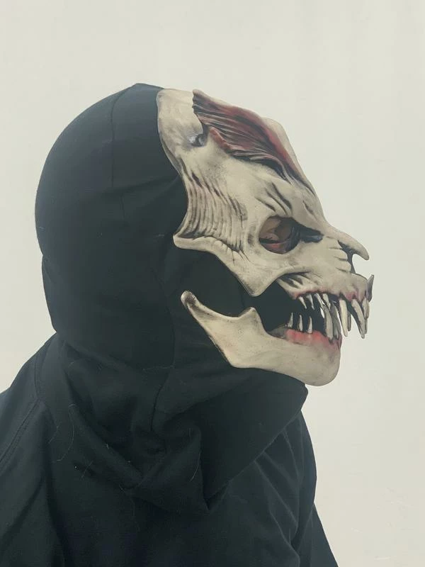 Hand sculpted and handmade mask. Cloth underlining that covers back of head, and neck area. Latex mask with moving mouth. Light weight. Polycotton material.